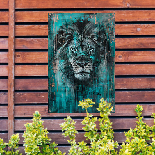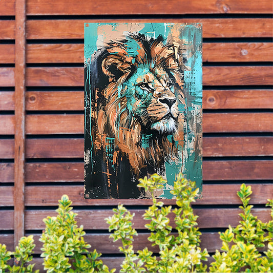 Abstracte leeuw in levendige graffiti-stijl tuinposter