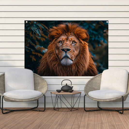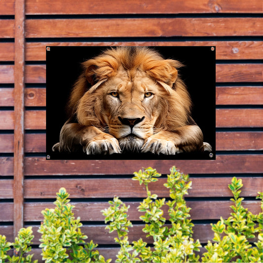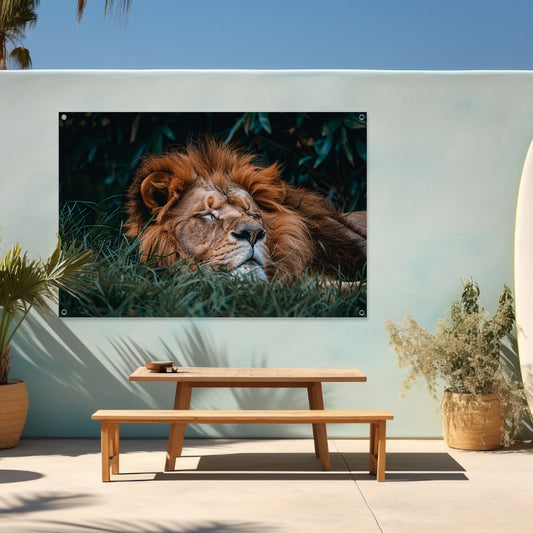 Majestueuze Leeuw in Ontspannen Houding tuinposter