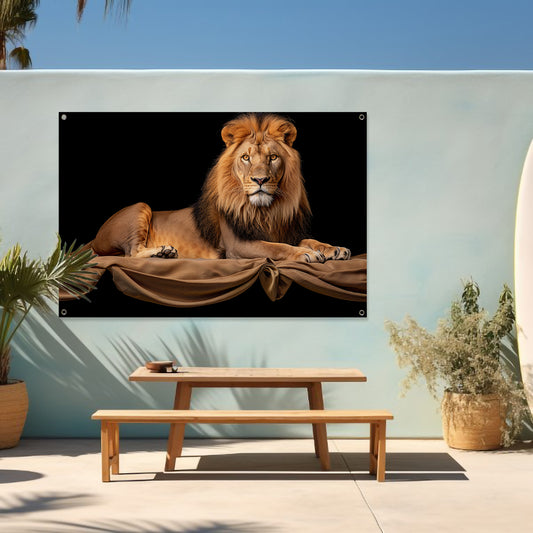Rustende Leeuw op Stoffen Achtergrond tuinposter