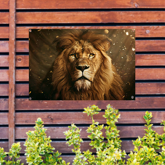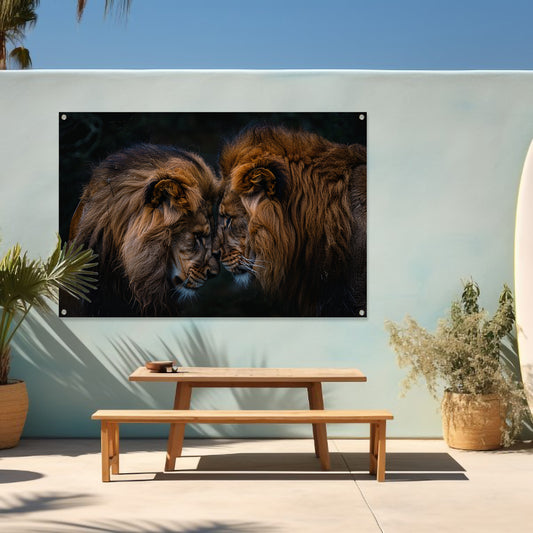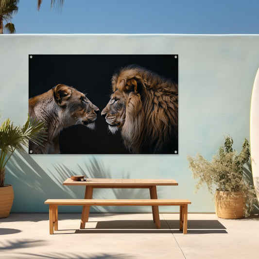 Majestueuze leeuwen in intens oogcontact tuinposter