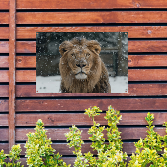 Majestueuze Leeuw in Sneeuwbedekte Wildernis tuinposter