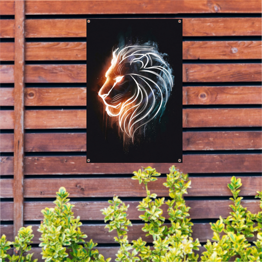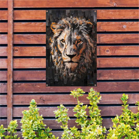 Majestueuze leeuw in levendige kleuren tuinposter