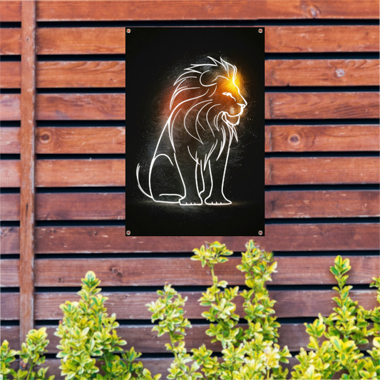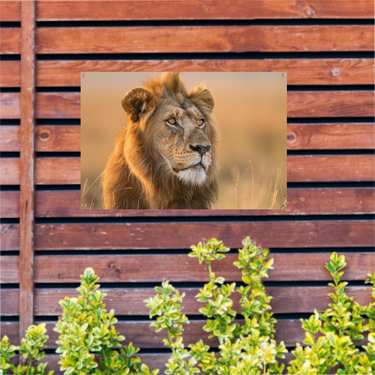 Leeuw in Schemerlicht met Gouden Manen tuinposter