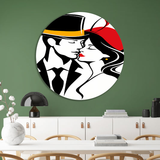 Modern kunstwerk van koppel in popart stijl aluminium muurcirkel
