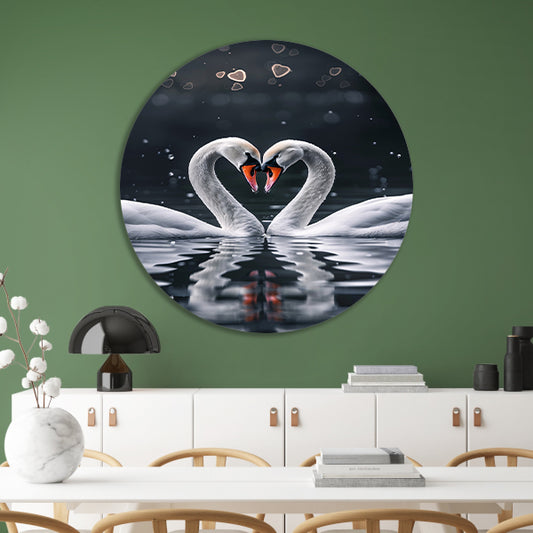 Twee zwanen vormen een hartvorm aluminium muurcirkel
