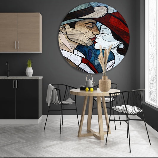 Abstract kussend paar in geometrische stijl aluminium muurcirkel