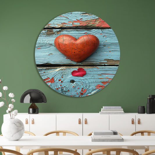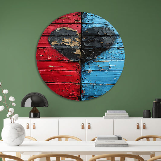 Gebroken Hart Graffiti op Rood Blauwe Houten Muur aluminium muurcirkel