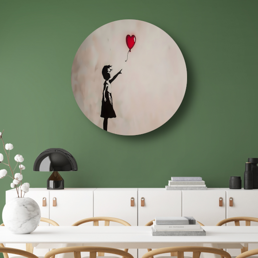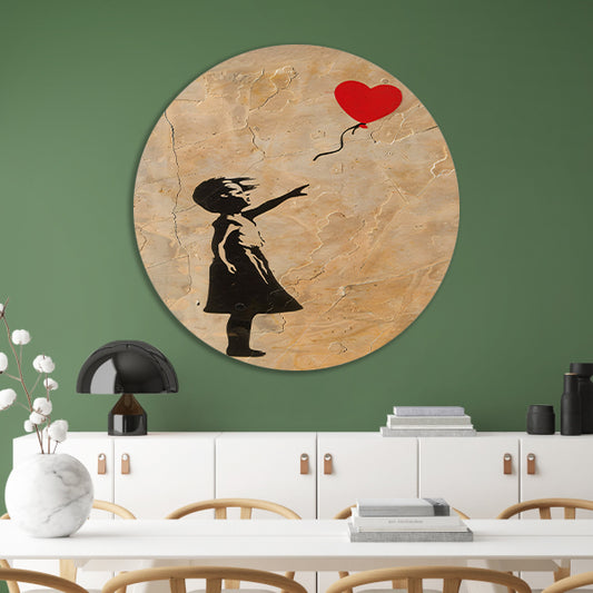 Meisje Laat Rode Hartvormige Ballon Los aluminium muurcirkel