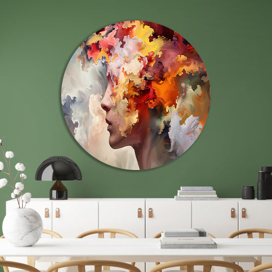 Vrouwelijke abstractie in lijnen aluminium muurcirkel