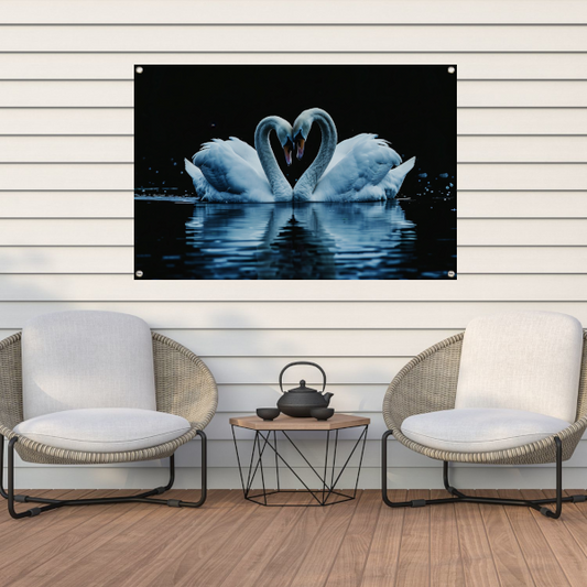 Twee zwanen vormen een hartvorm tuinposter