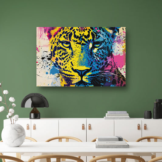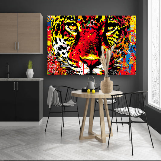 Kleurrijke popart schilderij van een luipaard acrylglas