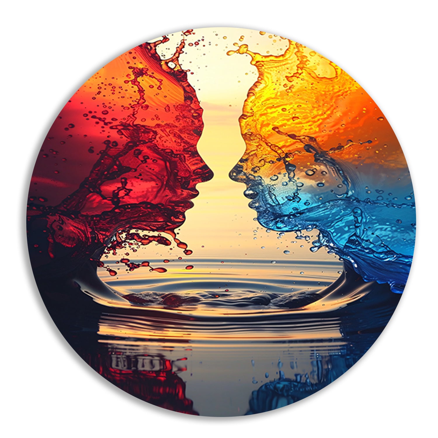 Twee Abstract Gezichten in een Kleurrijk Omhelzing aluminium muurcirkel