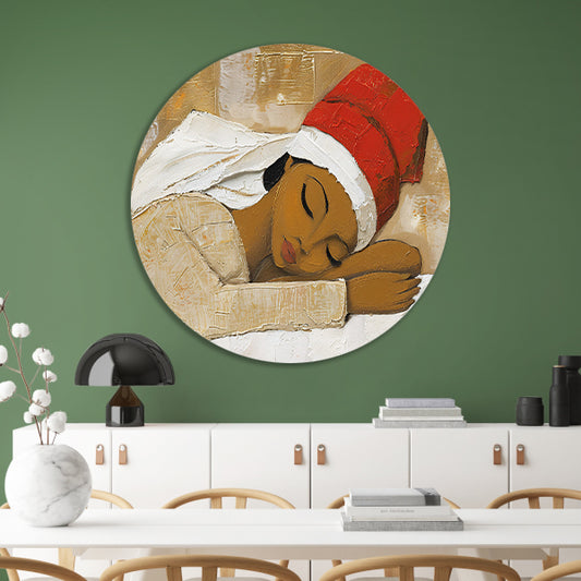 Slapende vrouw met rode hoed schilderij aluminium muurcirkel