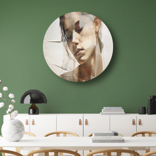 Versplinterd Gezicht in Neutrale Tinten aluminium muurcirkel