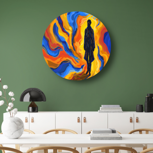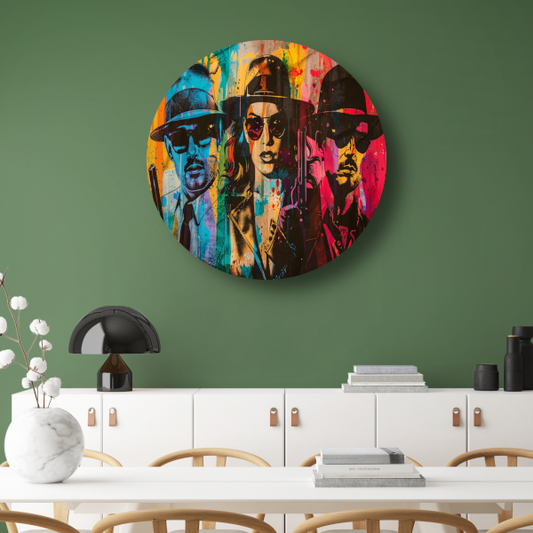 Geheimzinnige Maffiafiguren met Kleurrijke Achtergrond aluminium muurcirkel