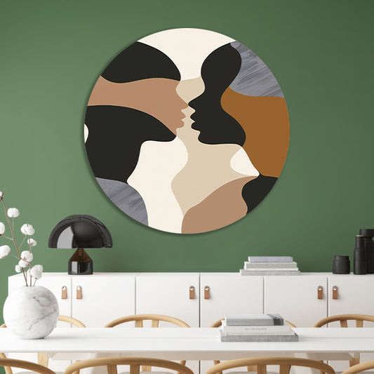 Intimiteit van Twee Gezichten in Aardetinten aluminium muurcirkel