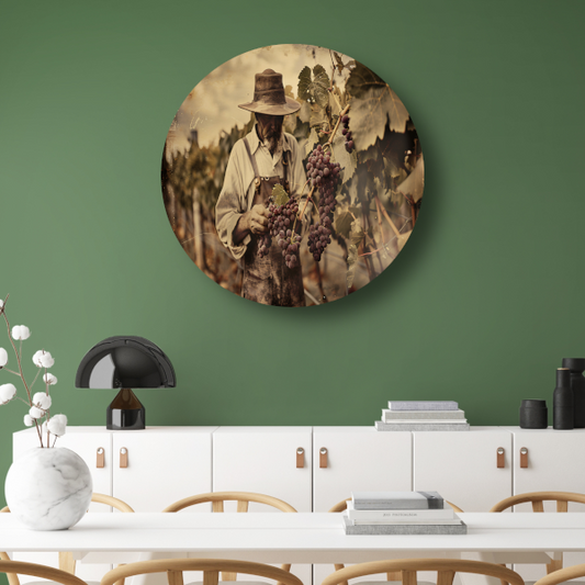 Oude wijnboer verzorgt zijn druiven aluminium muurcirkel
