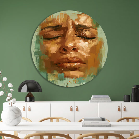 Expressief Portret van een Vrouw in Tranen aluminium muurcirkel