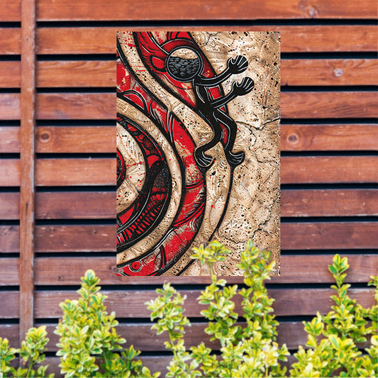 Rode Draaikolk met Zwarte Astronaut Figuur tuinposter
