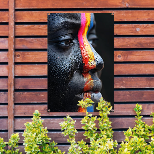 Dynamisch Gezicht met Kleurrijk Regendruppels tuinposter