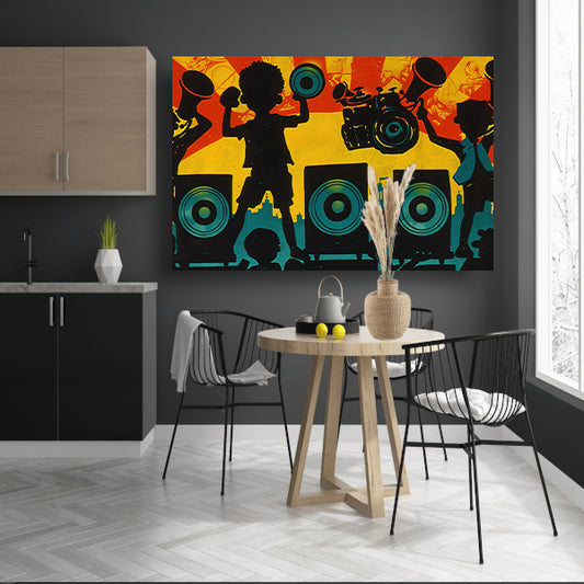 Muziek en silhouetten in stadslandschap canvas