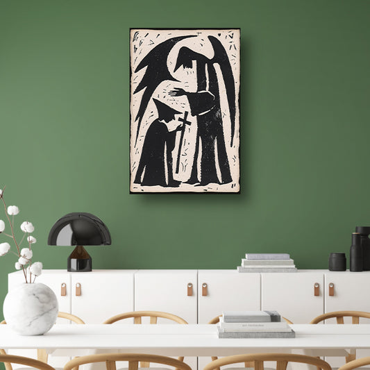 Engelachtige figuur met knielende gestalte canvas