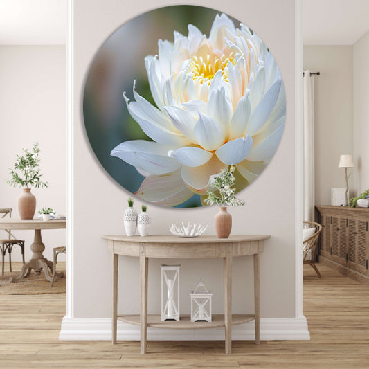 Elegante close-up van bloeiende witte lotus aluminium muurcirkel