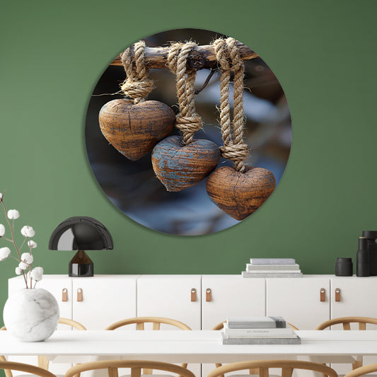 Houten Harten Aan Rustiek Touw Gehangen aluminium muurcirkel