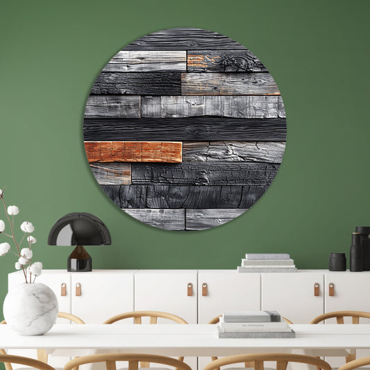 Verbrand Houten Wandpaneel aluminium muurcirkel