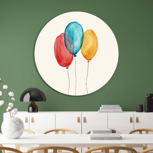 Drie kleurrijke ballonnen met dunne koorden aluminium muurcirkel