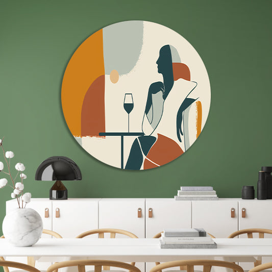 Zittende silhouet met wijnglas in minimalisme aluminium muurcirkel