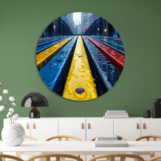 Compositie in Lijnen en Kleuren aluminium muurcirkel