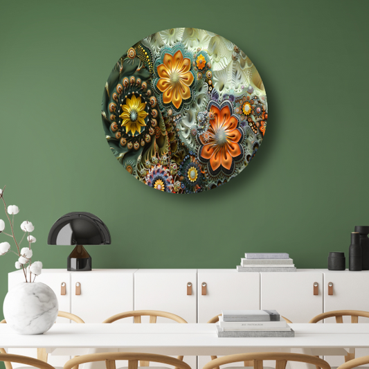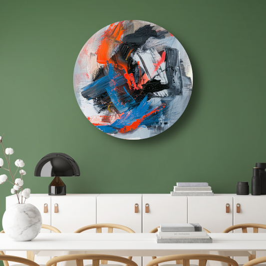 Abstracte Vormen en Lijnen in Oranje en Zwart aluminium muurcirkel