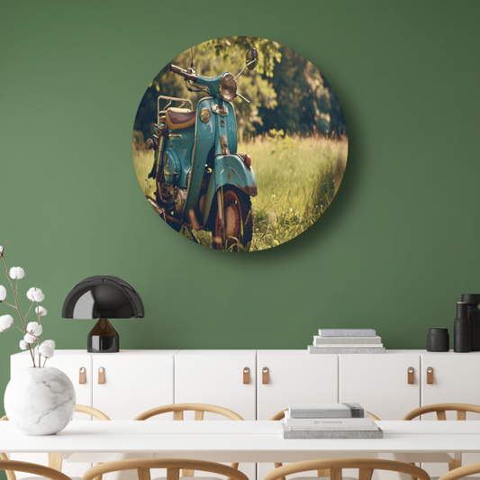 Minimalistische Scooter in Grasveld aluminium muurcirkel