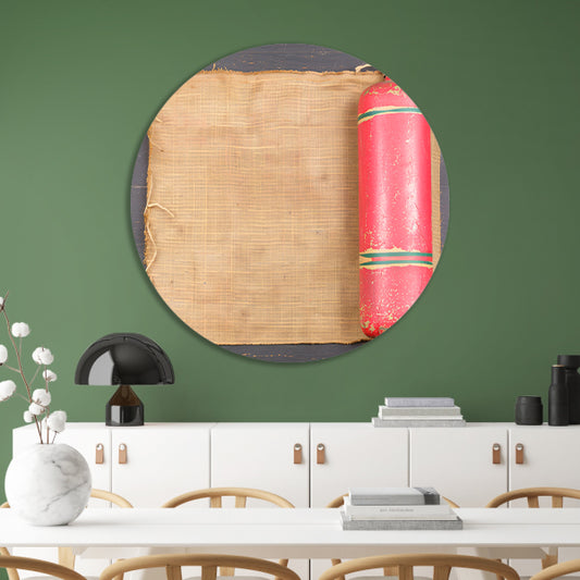 Vintage vuurblusser met verweerd doek aluminium muurcirkel