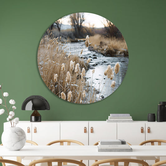 Rustige Kreek in het Landschap aluminium muurcirkel