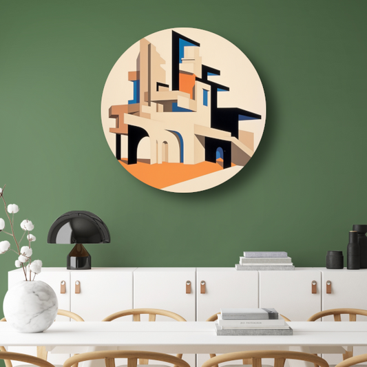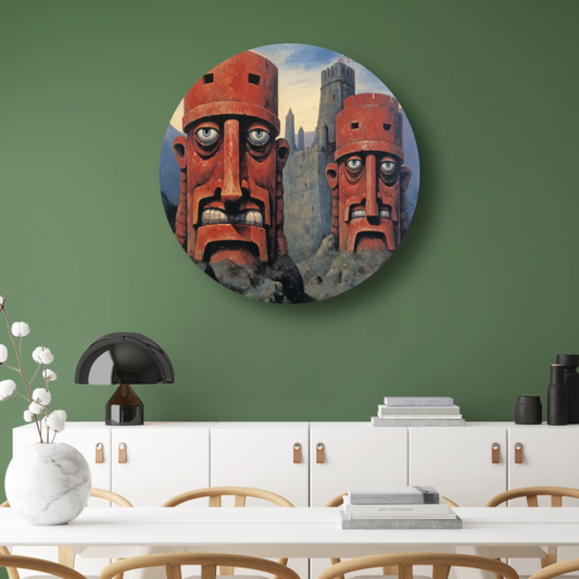 Totempalen en kasteel in minimalisme forex muurcirkel