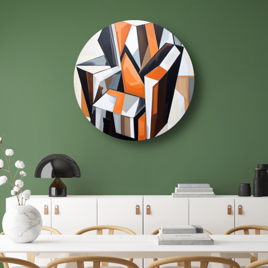 Zwart-witte en oranje stoel in minimalistische ruimte forex muurcirkel