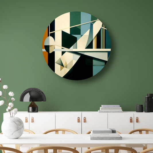 Geometrische compositie in geel, blauw en wit forex muurcirkel