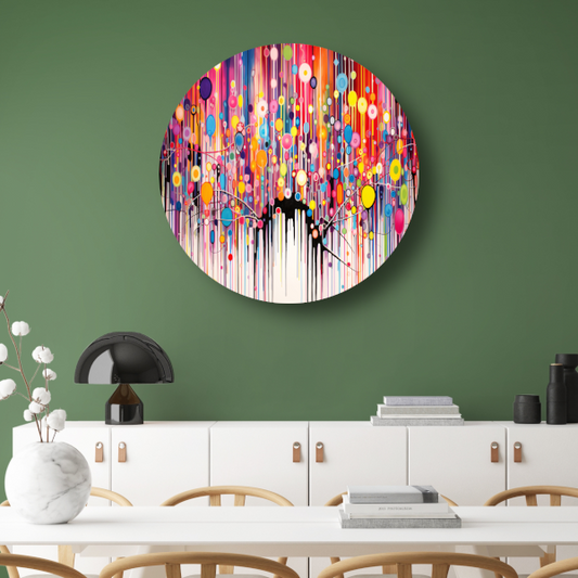 Roodborstje op een tak, Minimalistisch schilderij forex muurcirkel