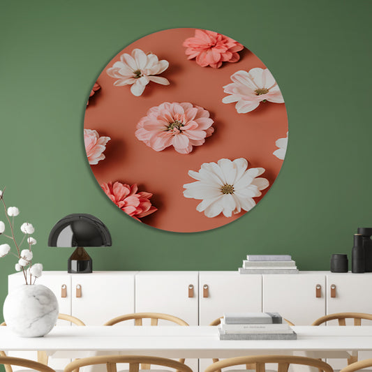 Minimalistische bloemen op oranje achtergrond aluminium muurcirkel