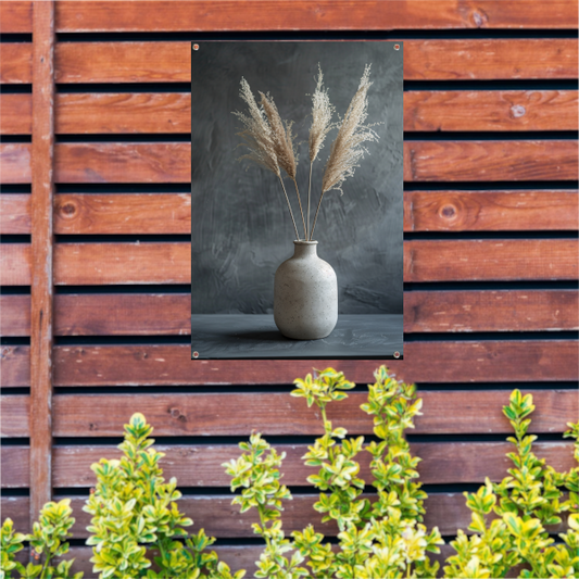 Minimalistische Vaas met Pampasgras tegen Donkere Achtergrond tuinposter