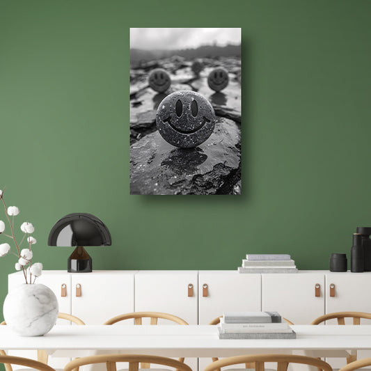 Drie Glimlachende Stenen op een Grijze Dag poster