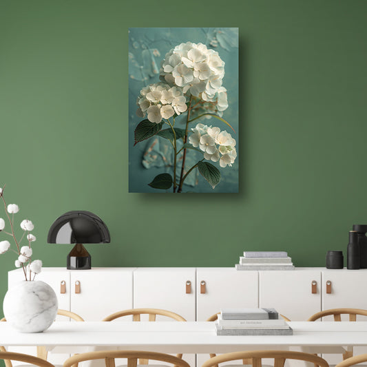 Witte Hortensia Bloemen in Turquoise Vaas poster