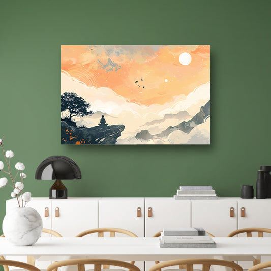 Minimalistisch kunstwerk van kat in abstract landschap canvas