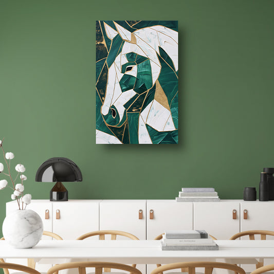 Abstract groen-gouden paardenschilderij op canvas canvas