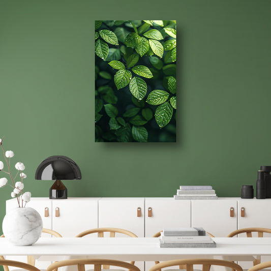 Zwart-witfoto van dauwdruppels op bladeren canvas