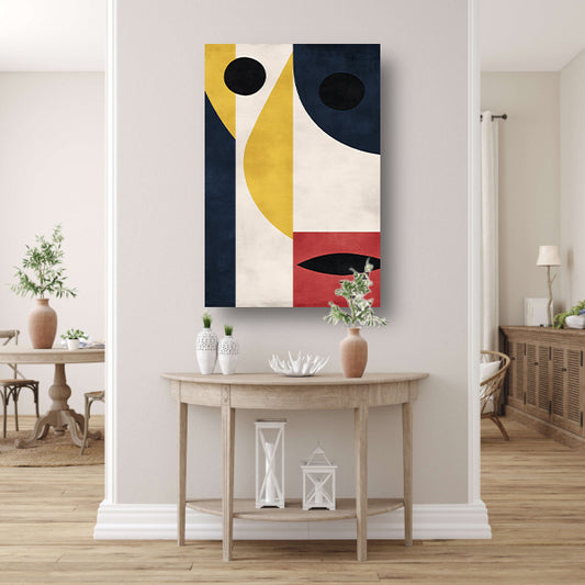 Abstract geometrisch gezicht met sterke contrasten canvas met baklijst