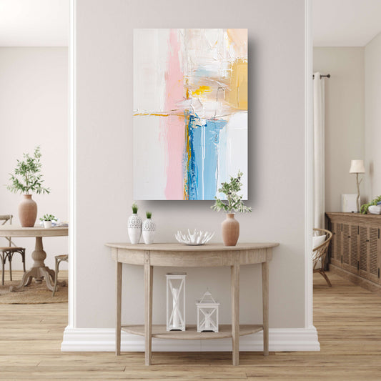 Abstract kunstwerk met pastelkleuren en textuur canvas met baklijst