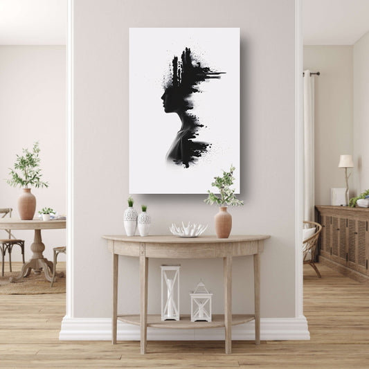 Zwart-wit silhouet met inktvlekken canvas met baklijst
